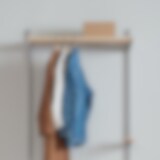 Sparring bracket depth 27 is the basis for this coat rack together with Sparring wall rails or hanging rails. The K27 solid birch coat rack has elaborate joinery details and the coat rail offers generous hanger space - coats and jackets can hang neatly in a row here. The round bar shelf provides a practical surface for bicycle helmets or a place where beautiful baskets can keep headgear, gloves and scarves in order.