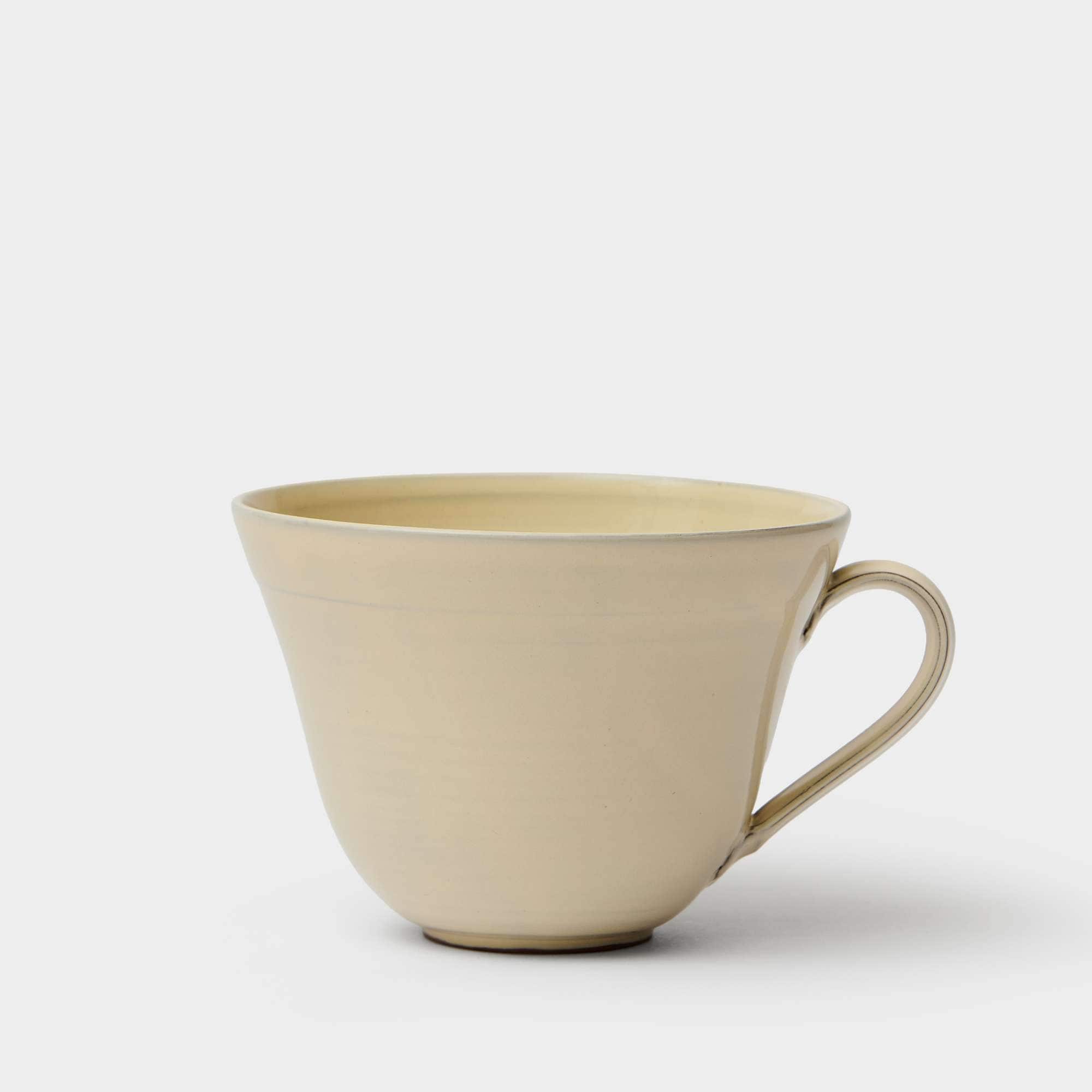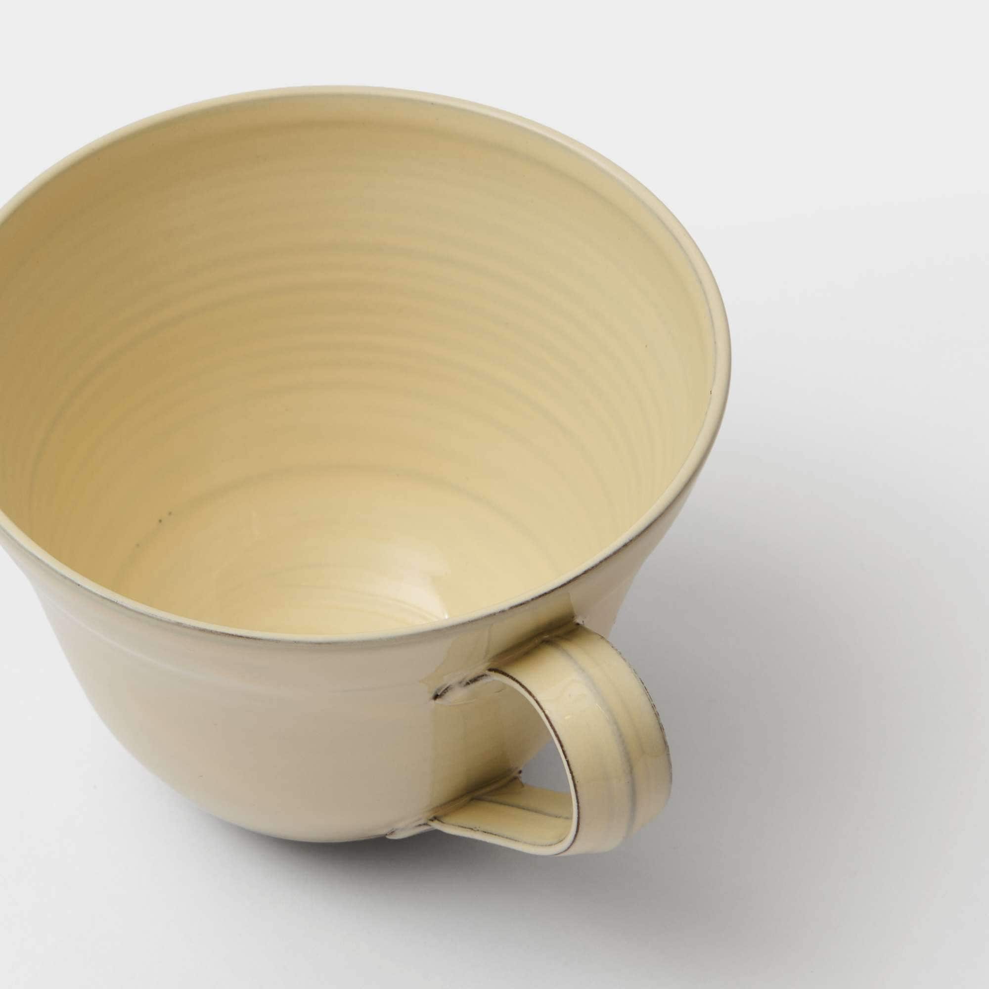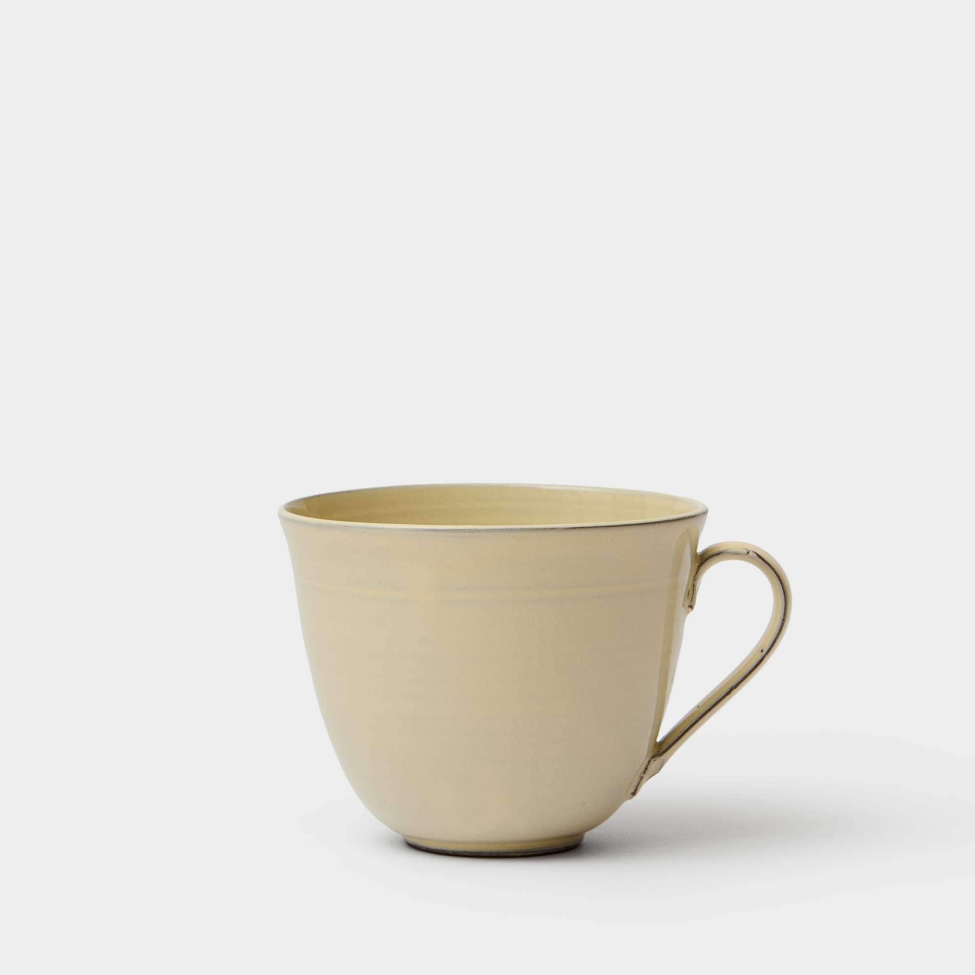 Teacup in high-fired earthenware with a yellow glaze. Made by Annica Gjerstad in her pottery studio in Sweden. The cup has a diameter of approximately 10 cm and a height of approximately 8 cm. All measurements are approximate, as shape and size may vary slightly during the drying and firing process. Each cup therefore has its own unique character, and natural variations in glaze and surface occur. It is dishwasher and microwave safe. To preserve the glaze over time, a mild dishwasher detergent is recommended.
