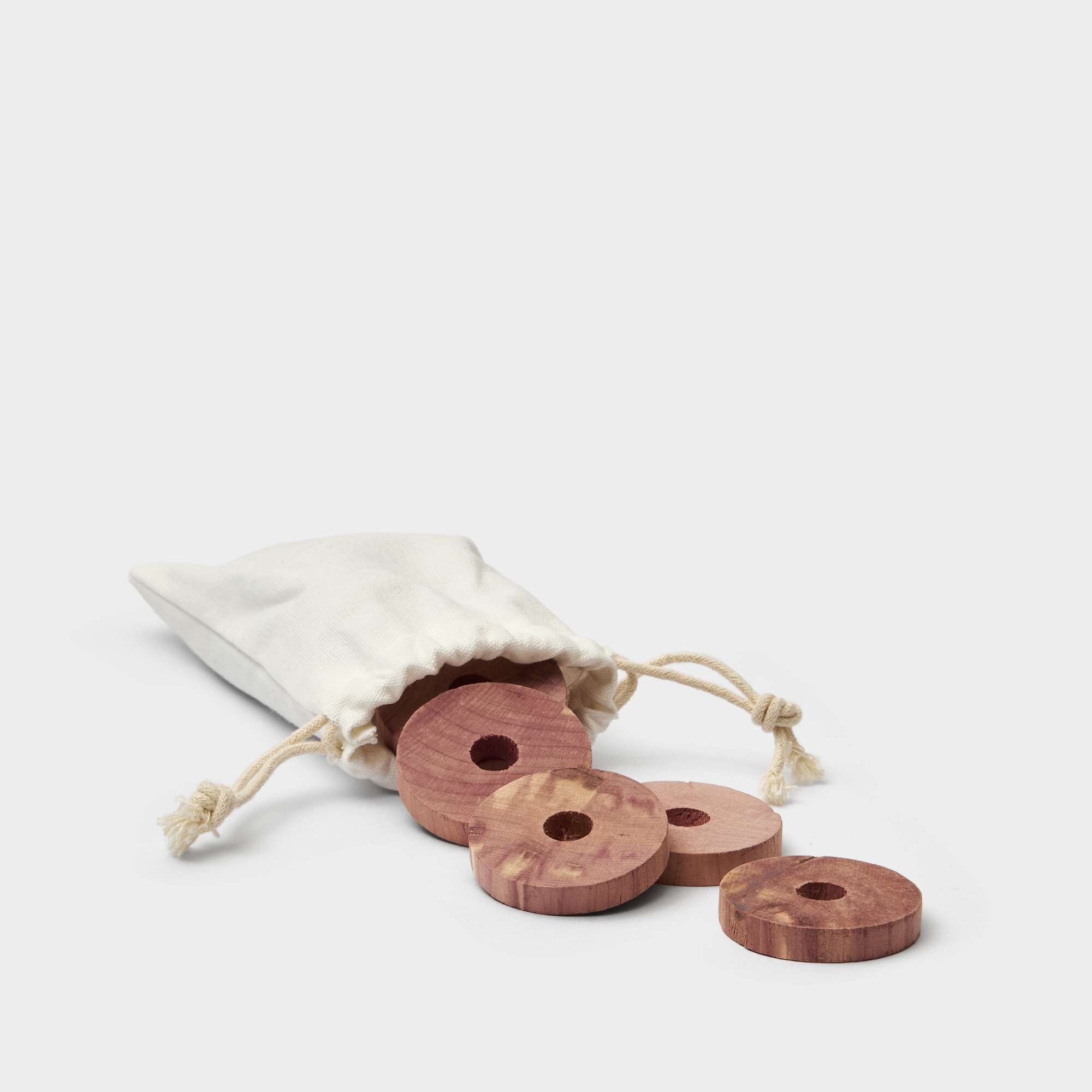 Cedar rings from Iris Hantverk are made of untreated red cedar and come in a pack of 10. Red cedar can be used to refresh closets or wardrobes and acts as a natural deterrent against insects.